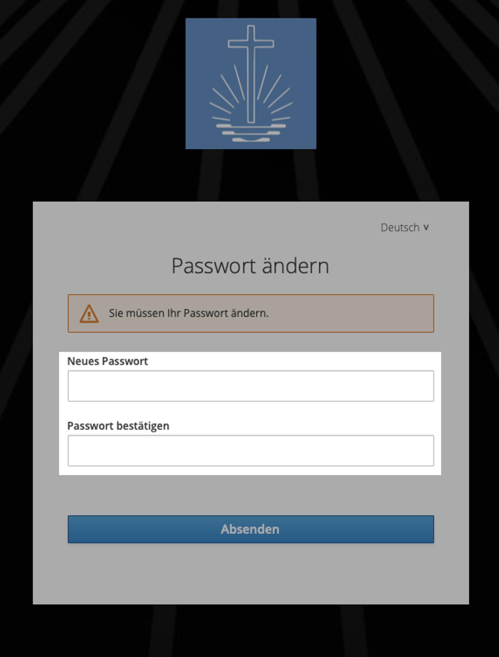 Das neue Passwort muss zwei Mal eingegeben werden. Es muss folgende Kritierien erfüllen: